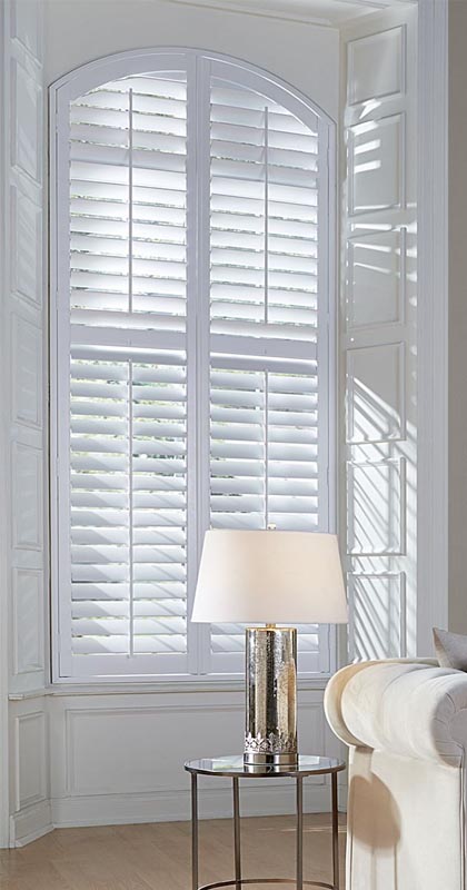 For a more traditional look, persian blinds are available in faux-wood as well as real wood construction. Usually made with thicker slats, persian blinds can rotate fully, allowing you precise control over light and privacy. Motorization options are available.